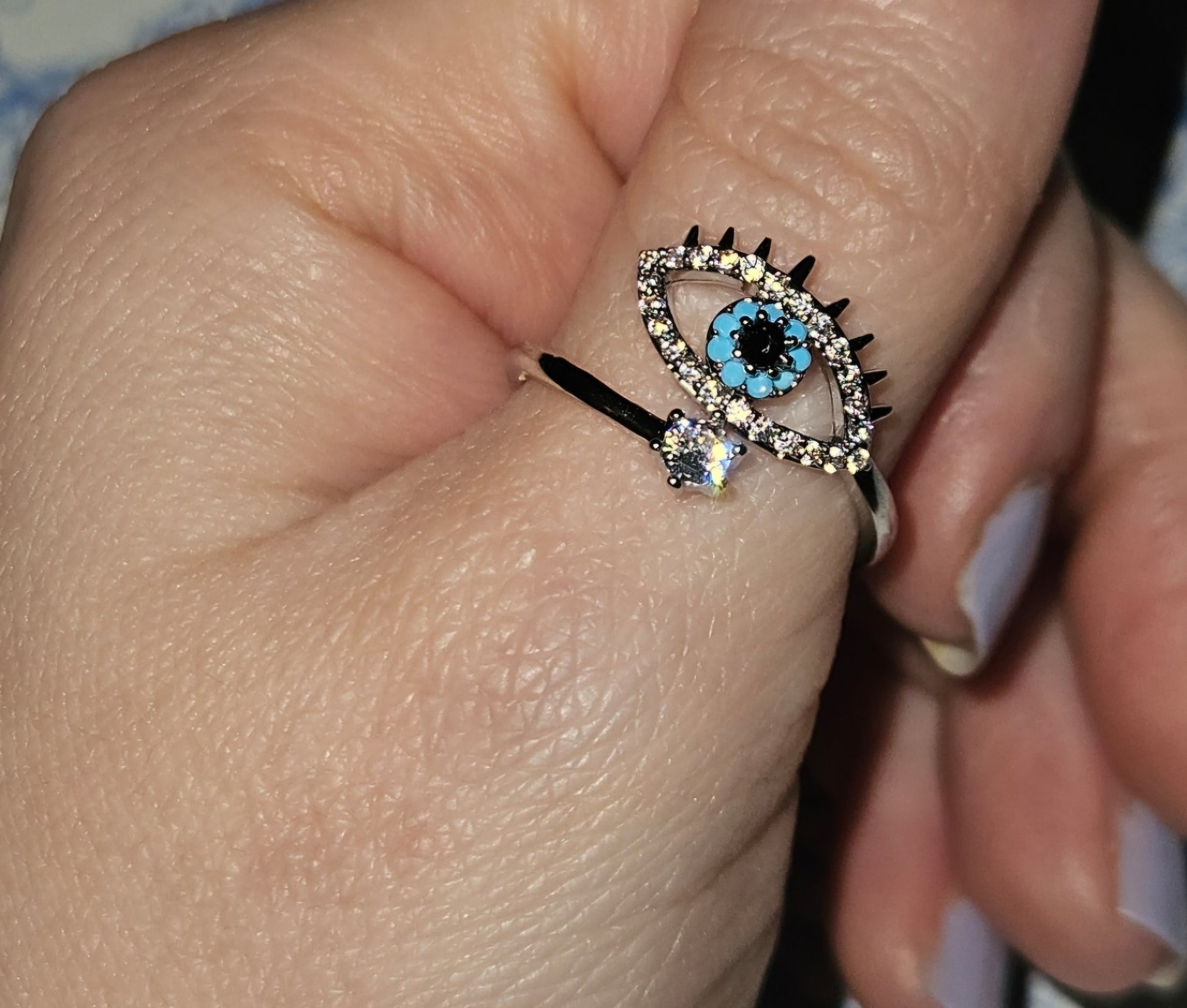 Each ring features a dazzling protective eye design surrounded by shimmering rhinestones — symbolizing intuition, clarity, and light.