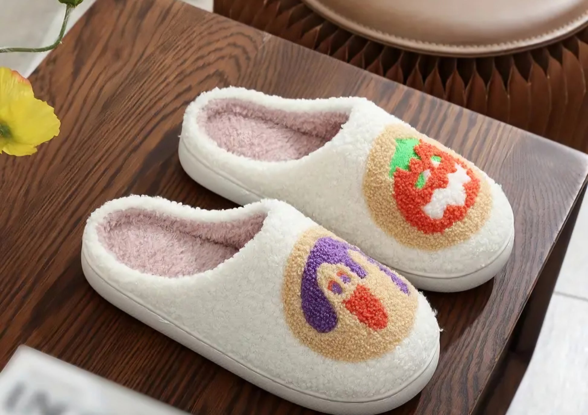 Get spooky-season cozy in our Halloween Cookie Slippers! These fuzzy Spooky Frost slip-ons feature fun cookie-inspired designs — a smiling jack-o’-lantern in Pumpkin Pop and a playful ghost detailed in Ghoul Grape. Stitched with soft, colorful yarn for that sweet-treat vibe, they’re perfect for lounging, gifting, or pairing with your favorite fall loungewear.