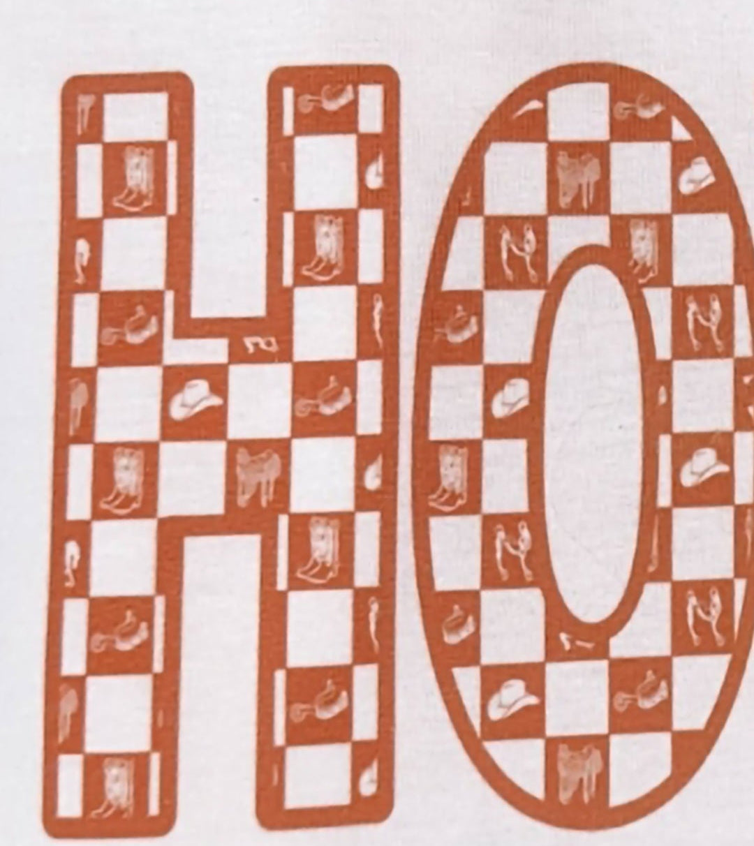 Say it loud, say it proud: Howdy! This western-chic graphic tee brings cozy desert vibes and a playful pop of personality. Featuring a bold checkered print filled with little cowboy hats, boots, and lassos, it’s a must-have for anyone living that country-core dream.